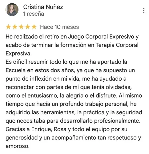 Formada en Ludocorporal y Tce, Terapia Gestalt y Técnicas Corporales para la terapia.